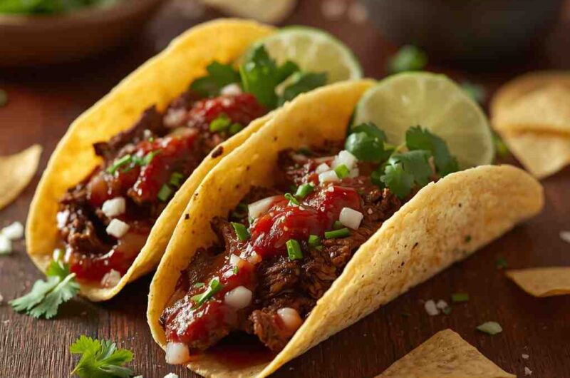 This dish is a must-try because it turns simple ingredients into a restaurant-quality taco night at home. The combination of slow-cooked beef, homemade salsa roja, and your favorite toppings makes it rich, flavorful, and satisfying.