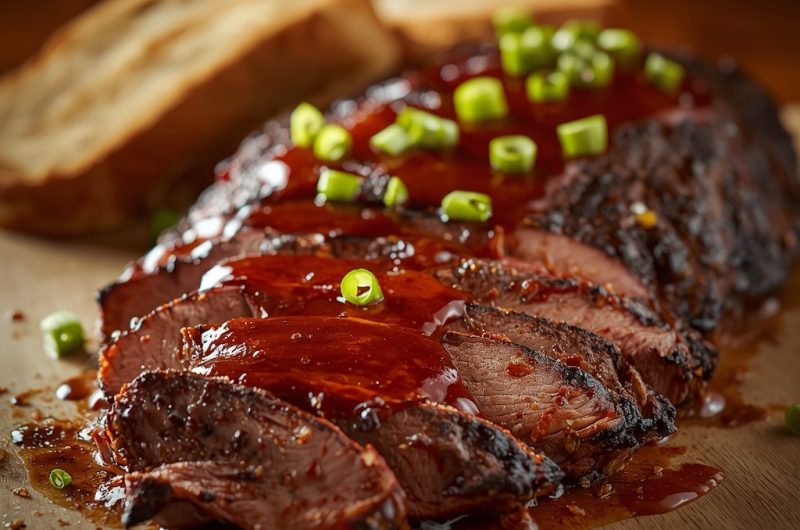 Rich, smoky, and irresistibly flavorful, Smoked BBQ Brisket with Tangy Sauce is a classic barbecue favorite that delivers tender, melt-in-your-mouth meat with every bite. The brisket is slow-smoked to perfection, allowing the natural flavors to develop and the meat to become incredibly juicy. Topped with a tangy, zesty barbecue sauce, each slice is packed with savory depth and a hint of sweetness that balances the smoky richness perfectly.