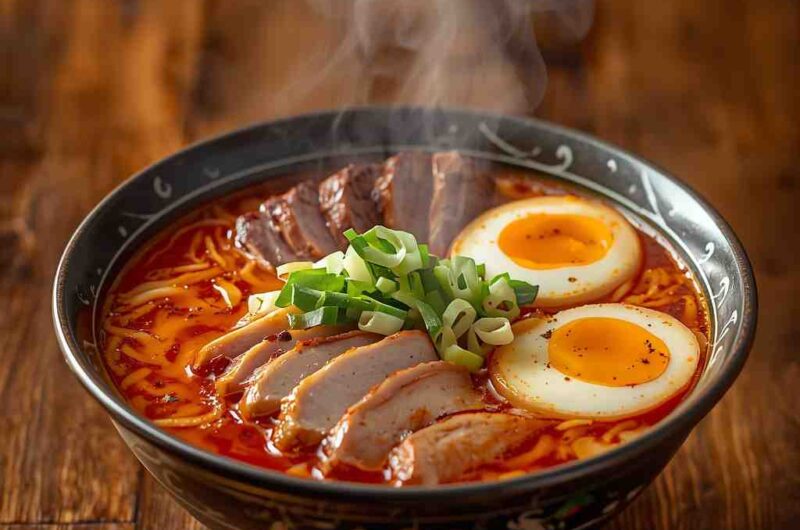 There’s something deeply comforting about a steaming bowl of ramen — and this Spicy Ramen Bowl with Soft-Boiled Egg takes that comfort to the next level. It’s a fusion of umami-rich broth, tender noodles, and the creamy perfection of a jammy soft-boiled egg, all elevated with chili paste and fragrant aromatics. Unlike instant ramen, this homemade version is hearty, customizable, and full of flavor that rivals restaurant-quality ramen.