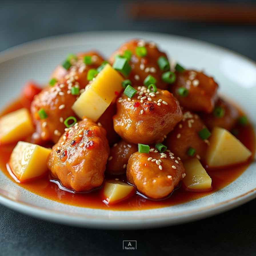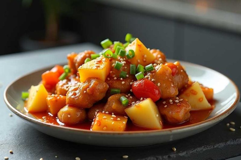 Sweet and Sour Chicken with Pineapple Chunks is a timeless favorite that brings together crispy, tender chicken pieces coated in a glossy sauce that perfectly balances sweetness and tang. The addition of juicy pineapple chunks adds freshness and natural sweetness, while colorful vegetables provide crunch and visual appeal. This dish is inspired by classic Chinese-American cuisine and is loved for its bold flavors, vibrant presentation, and comforting appeal. Whether served for a family dinner or a special occasion, this recipe delivers restaurant-style results at home with simple, accessible ingredients.
