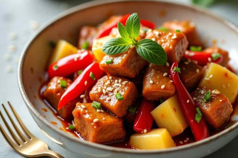 - Juicy Pineapple Pieces – Provide a natural sweetness that balances the tangy sauce.