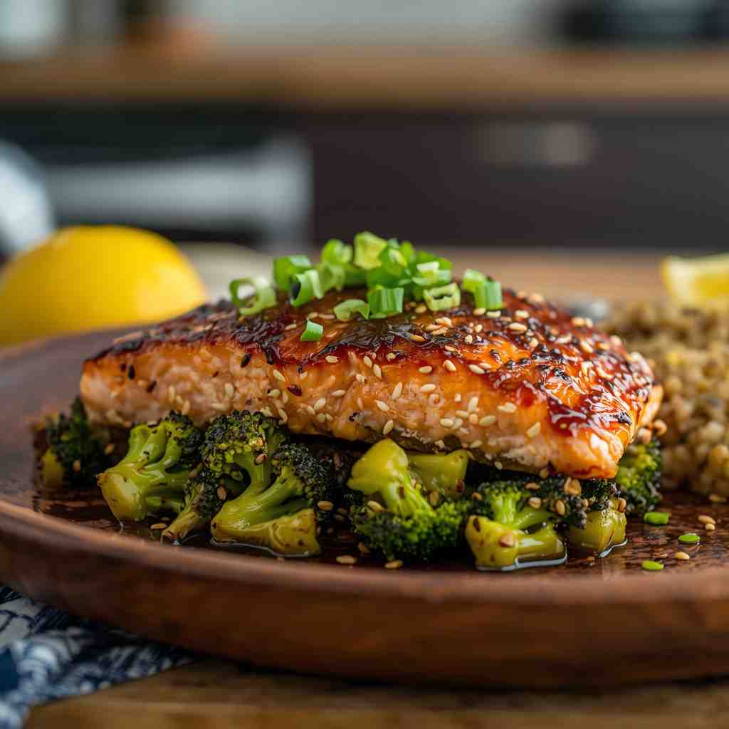 Sweet Chili Glazed Salmon with Roasted Broccoli is a dish that effortlessly marries bold flavor with nutritious simplicity. The salmon is brushed with a sticky, sweet-spicy glaze made from Asian-style sweet chili sauce, soy, garlic, and lime, then baked or air-fried to caramelized perfection. It’s paired with roasted broccoli — crisp on the edges and tender inside — creating a harmony of textures and tastes.