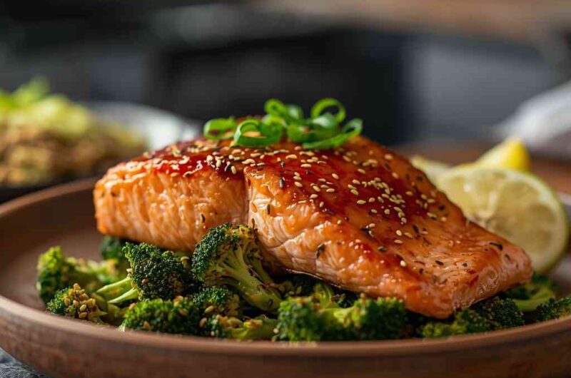Sweet Chili Glazed Salmon with Roasted Broccoli is a dish that effortlessly marries bold flavor with nutritious simplicity. The salmon is brushed with a sticky, sweet-spicy glaze made from Asian-style sweet chili sauce, soy, garlic, and lime, then baked or air-fried to caramelized perfection. It’s paired with roasted broccoli — crisp on the edges and tender inside — creating a harmony of textures and tastes.