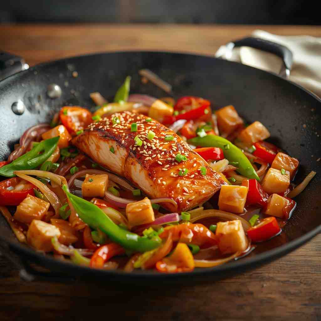 If you’re looking for a quick, vibrant, and flavor-packed meal that tastes like it came straight from your favorite Asian restaurant, look no further than this Sweet Chili Salmon Stir-Fry with Vegetables. This dish combines tender, flaky pieces of salmon with crisp, colorful stir-fried vegetables — all coated in a glossy, sweet-and-spicy chili sauce that’s both irresistible and deeply satisfying.