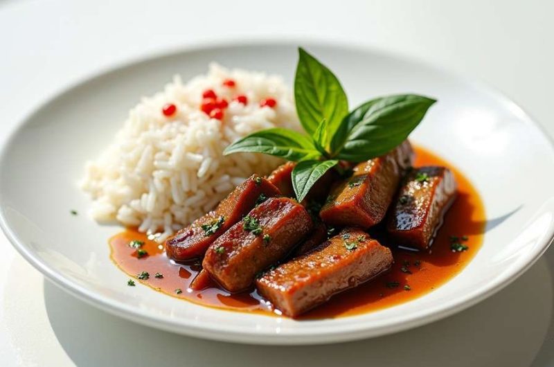 Thai Basil Beef with Jasmine Rice is a bold, aromatic dish that captures the essence of Thai street food in a simple, home-cooked format. This recipe features tender beef cooked quickly over high heat with garlic, chilies, and a savory-sweet sauce, then finished with fragrant Thai basil that releases its signature peppery, slightly anise-like aroma.