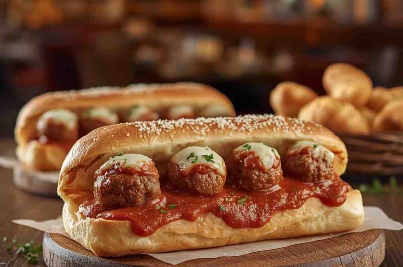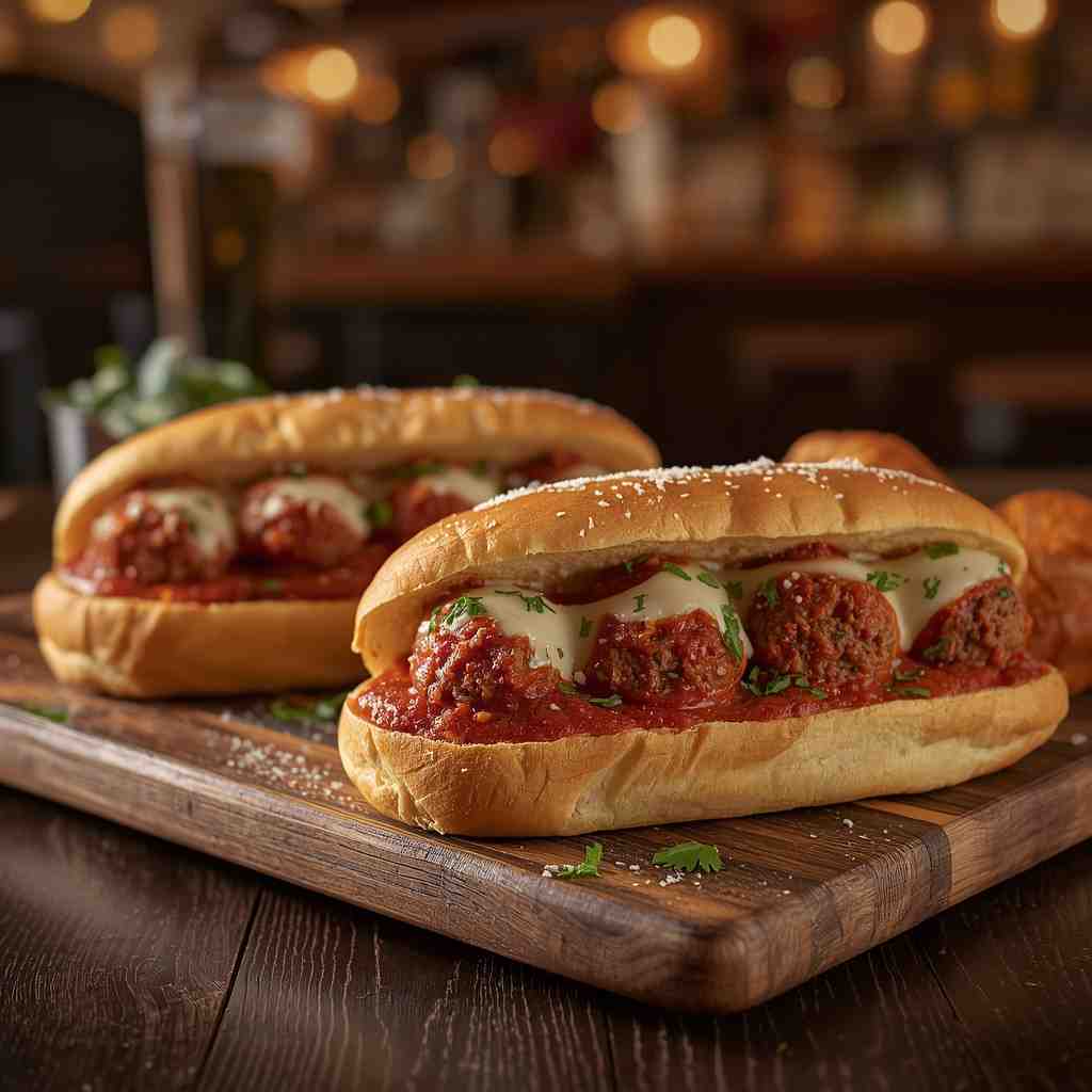 - Step 5: Assemble the Subs : Place 3–4 meatballs inside each toasted sub roll. Spoon extra marinara sauce over the top. Sprinkle generously with mozzarella and Parmesan cheese. Return to the oven and bake until cheese is melted and bubbly (about 5–7 minutes).