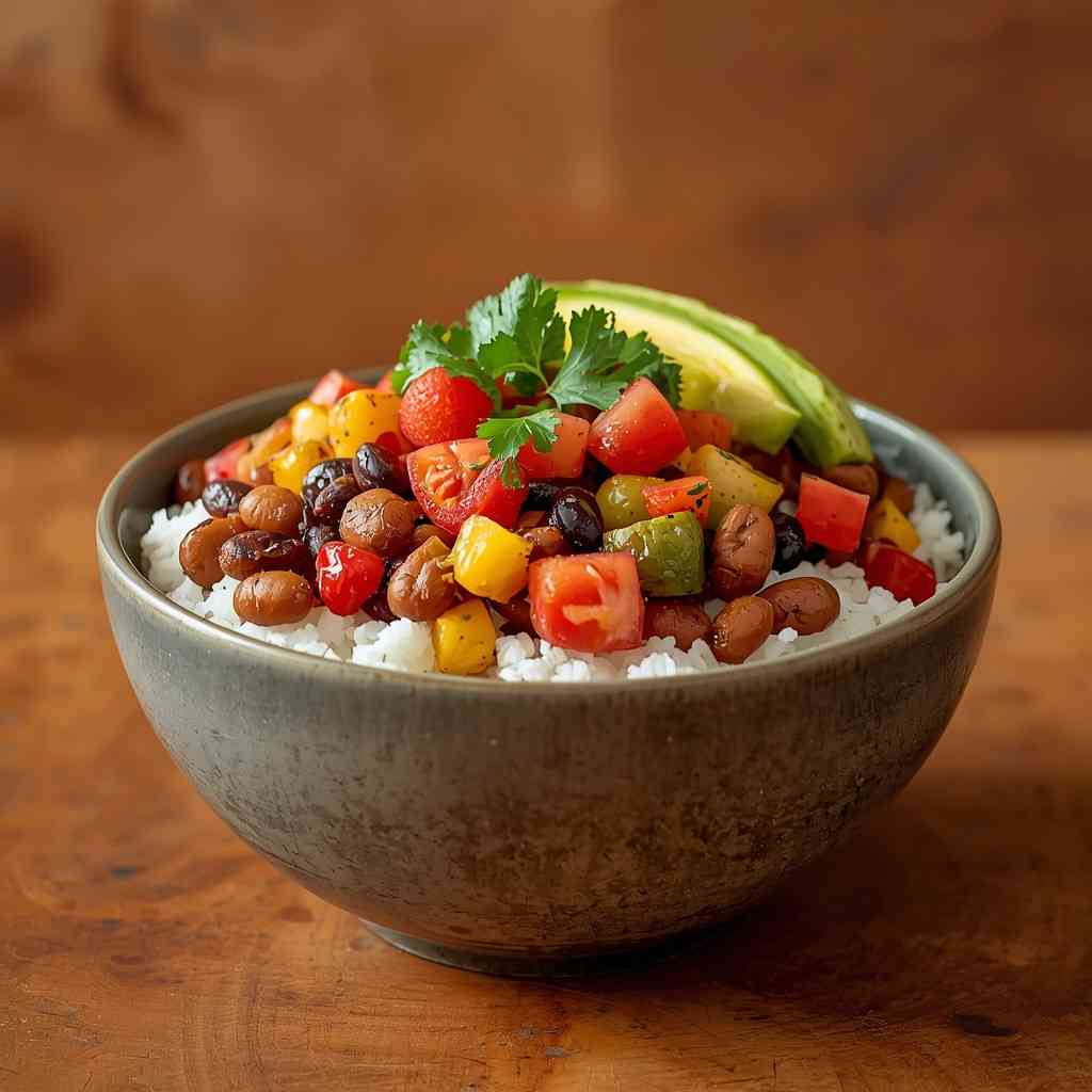 I love this recipe because it showcases how satisfying vegan meals can be without relying on processed ingredients. The flavors are bold, fresh, and comforting, while the nutritional profile is outstanding. The savory black beans, fluffy rice, zesty salsa, crunch from veggies, and creaminess from avocado all come together effortlessly. It’s one of those dishes that tastes indulgent yet fuels your body with fiber, protein, vitamins, and wholesome carbs.