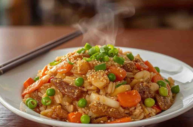 - Stir-fry for 3–5 minutes, allowing the rice to absorb the sauce and slightly crisp up.
