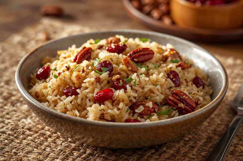 Wild Rice Pilaf with Cranberries and Pecans is a festive, flavorful, and nutritious dish that combines nutty wild rice, sweet-tart cranberries, and crunchy toasted pecans. It’s easy to prepare yet elegant enough for holiday tables, potlucks, or weeknight dinners. With its balanced flavors, beautiful colors, and versatility, this pilaf is a must-try for anyone looking to elevate a simple side dish into something special.