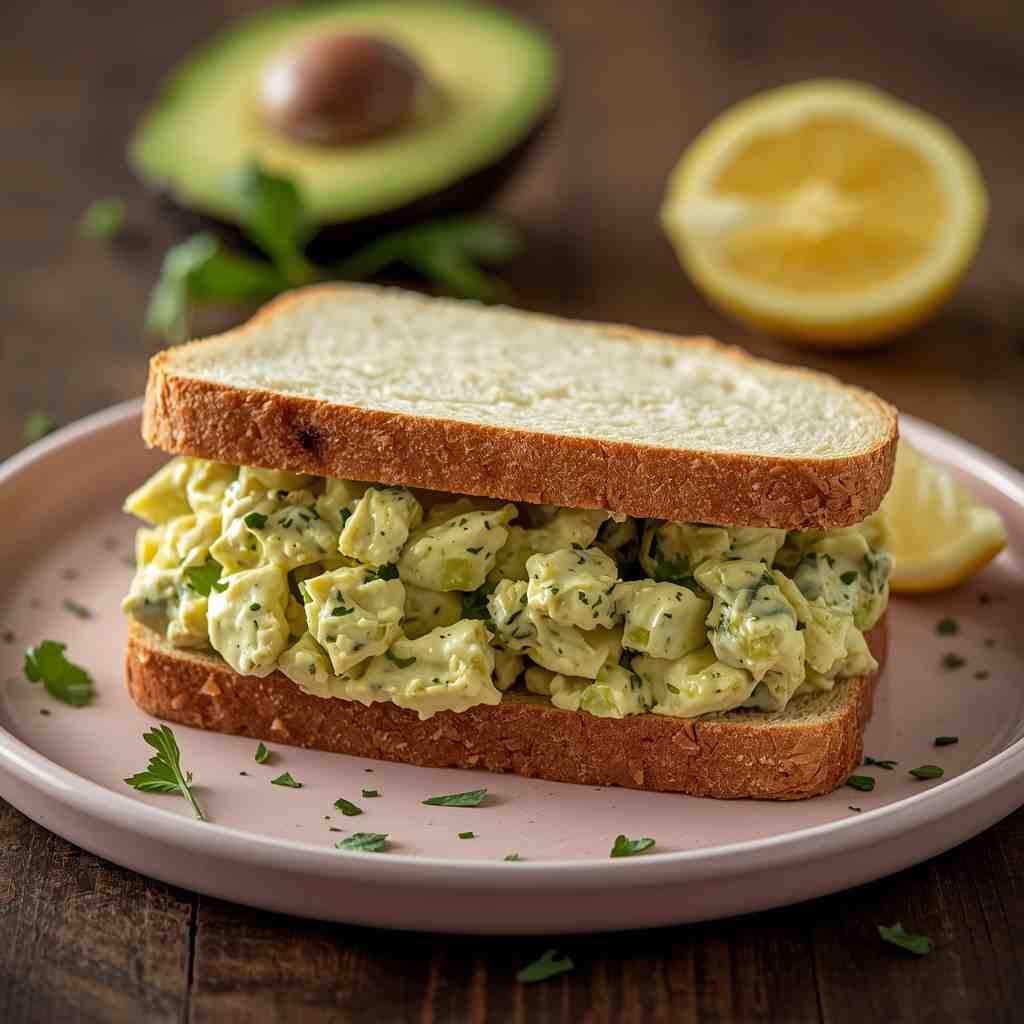 The Avocado Egg Salad Sandwich is a modern twist on the classic egg salad, replacing heavy mayonnaise with creamy, nutrient-packed avocado. This sandwich is light, flavorful, and satisfying, perfect for breakfast, lunch, or a quick snack. The avocado adds richness and a subtle buttery flavor, while the hard-boiled eggs provide protein and texture. Fresh herbs, a squeeze of lemon, and a touch of seasoning make this sandwich vibrant and delicious.