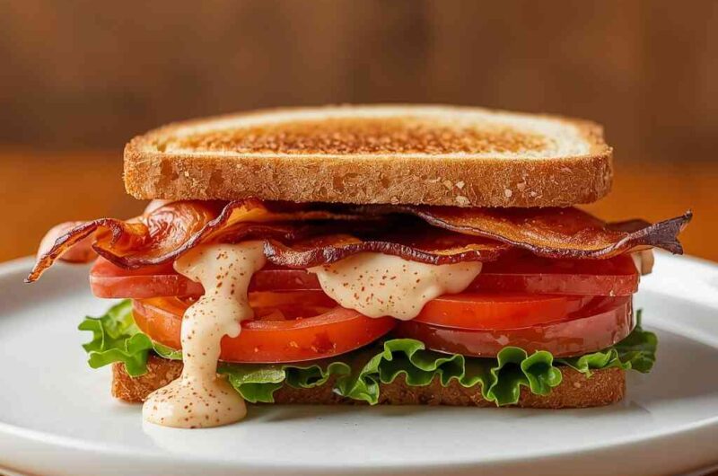 The BLT Sandwich with Spicy Mayo is a modern twist on the beloved classic — bacon, lettuce, and tomato. This sandwich brings together the crunch of perfectly cooked bacon, the freshness of crisp lettuce, and the juicy sweetness of ripe tomatoes, all elevated by a creamy, tangy spicy mayo that adds just the right kick.