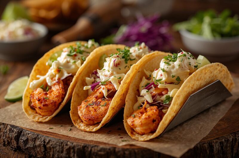 Cajun Shrimp Tacos with Creamy Slaw are the ultimate fusion of bold flavors and fresh textures. Juicy shrimp seasoned with smoky-spicy Cajun seasoning are pan-seared to perfection and tucked inside warm tortillas, then topped with a refreshing creamy slaw. The combination of spicy shrimp, cool crunchy slaw, and soft tortillas makes each bite irresistible. This recipe is fast, fresh, and full of flavor — ideal for taco night, summer dinners, or entertaining guests.