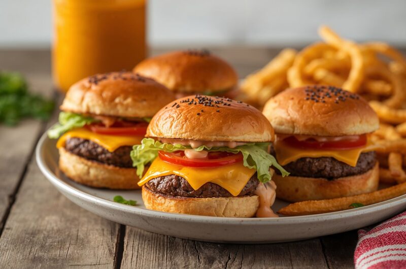 Cheeseburger Sliders with Special Sauce are a fun, flavorful, and crowd-pleasing dish that’s perfect for any occasion. Juicy beef patties, melted cheese, crisp pickles, onions, and tangy special sauce come together in soft, toasted slider buns for a perfectly balanced bite. Easy to prepare, customizable, and endlessly enjoyable, these sliders are sure to be a hit with family and friends. They offer all the comfort and flavor of classic cheeseburgers in a convenient, bite-sized form—making them a must-try recipe for casual meals, parties, or game-day snacks.