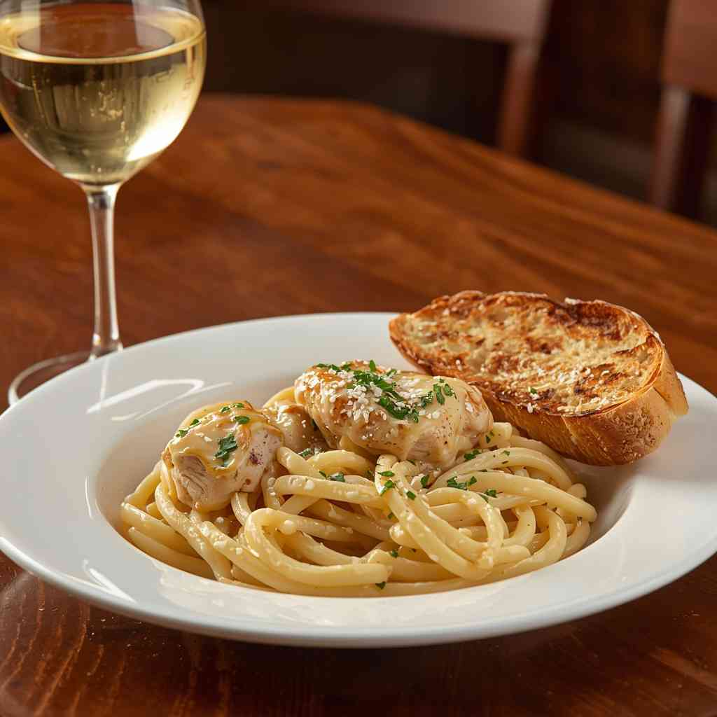 This dish is ideal for family dinners, romantic date nights, or cozy weekend meals. The creaminess of the Alfredo sauce and the crisp crunch of the garlic bread make it an irresistible favorite for all ages. It’s a dish that brings restaurant-quality flavor straight to your kitchen — indulgent yet simple to make.