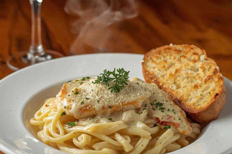 This dish is ideal for family dinners, romantic date nights, or cozy weekend meals. The creaminess of the Alfredo sauce and the crisp crunch of the garlic bread make it an irresistible favorite for all ages. It’s a dish that brings restaurant-quality flavor straight to your kitchen — indulgent yet simple to make.