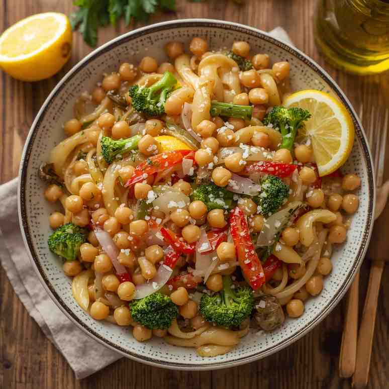 Chickpea Pasta Primavera with Lemon & Olive Oil is a celebration of fresh, seasonal vegetables and wholesome ingredients. It’s the kind of dish that brings together color, nutrition, and flavor in perfect harmony — light yet filling, healthy yet comforting.
