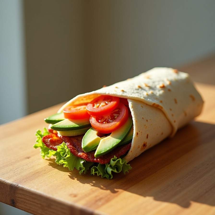The avocado adds richness and a smooth texture that perfectly complements the salty crunch of bacon and the juiciness of tomatoes. Quick to assemble yet packed with flavor, this wrap is perfect for lunch, a picnic, or even a light dinner.
