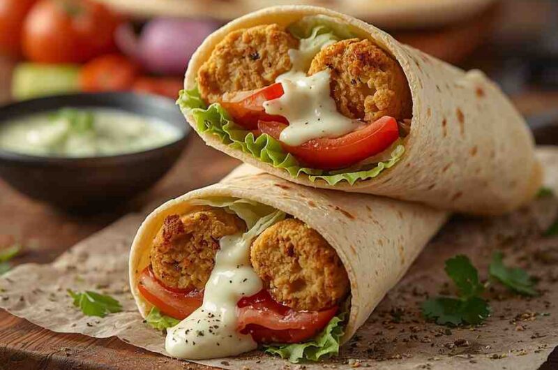 Falafel Wraps with Garlic Sauce are the epitome of wholesome comfort food — a delightful blend of crispy falafel, creamy garlic sauce, and crunchy veggies wrapped in warm pita bread.