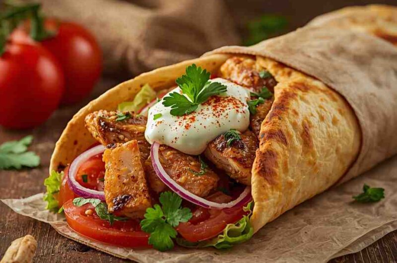 The Greek Chicken Gyro Wrap with Tzatziki Sauce is a Mediterranean street food classic that embodies freshness, comfort, and vibrant flavor in every bite. “Gyro” (pronounced yee-roh) means “turn” in Greek — traditionally referring to meat cooked on a vertical rotisserie and then wrapped in soft pita bread with creamy tzatziki, crisp veggies, and a squeeze of lemon.