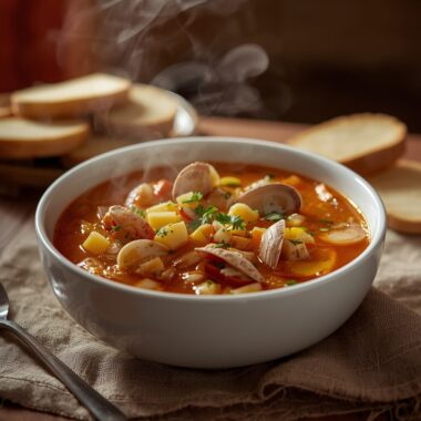 The Grilled Cheese Sandwich with Tomato Soup is the ultimate comfort meal—simple, nostalgic, and endlessly satisfying. The combination of buttery, cheesy, crispy bread with warm, tangy, and creamy soup is unbeatable. Whether you’re making this as a quick lunch, a cozy dinner, or a rainy-day indulgence, this pairing never disappoints. Once you try this recipe, it’s sure to become a regular in your kitchen rotation—because sometimes, the simplest dishes bring the most joy.