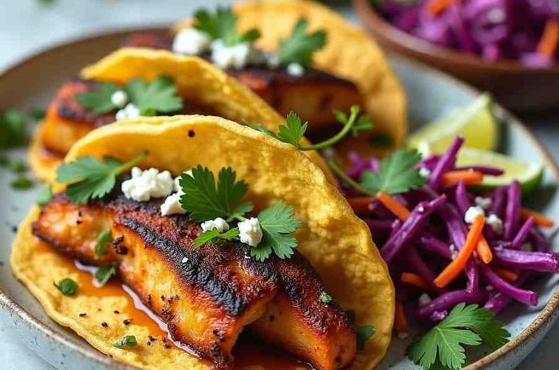 I love this recipe because it perfectly balances textures and flavors. The grilled fish is juicy and smoky, while the slaw adds a crisp, tangy freshness that complements the fish beautifully. The tacos are easy to assemble, colorful, and visually appealing, making them ideal for gatherings or weeknight meals. The combination of healthy ingredients and bold flavors makes this dish both satisfying and nourishing.