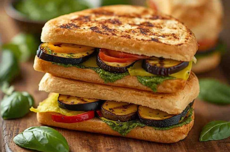 There’s something irresistibly satisfying about biting into a Grilled Veggie Panini with Pesto — warm, toasted bread with golden grill marks, a layer of vibrant pesto, and a medley of perfectly roasted vegetables melted together with cheese. This Italian-inspired sandwich is a celebration of simplicity and flavor, combining fresh, colorful vegetables with the rich, herby aroma of basil pesto.