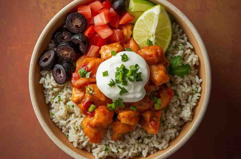 The Spicy Chicken Burrito Bowl with Cilantro Lime Rice is a flavor-packed, vibrant dish inspired by classic Mexican cuisine and modern Tex-Mex favorites. It takes all the best parts of a burrito — seasoned chicken, zesty rice, fresh veggies, and creamy toppings — and layers them into a beautiful, customizable bowl.