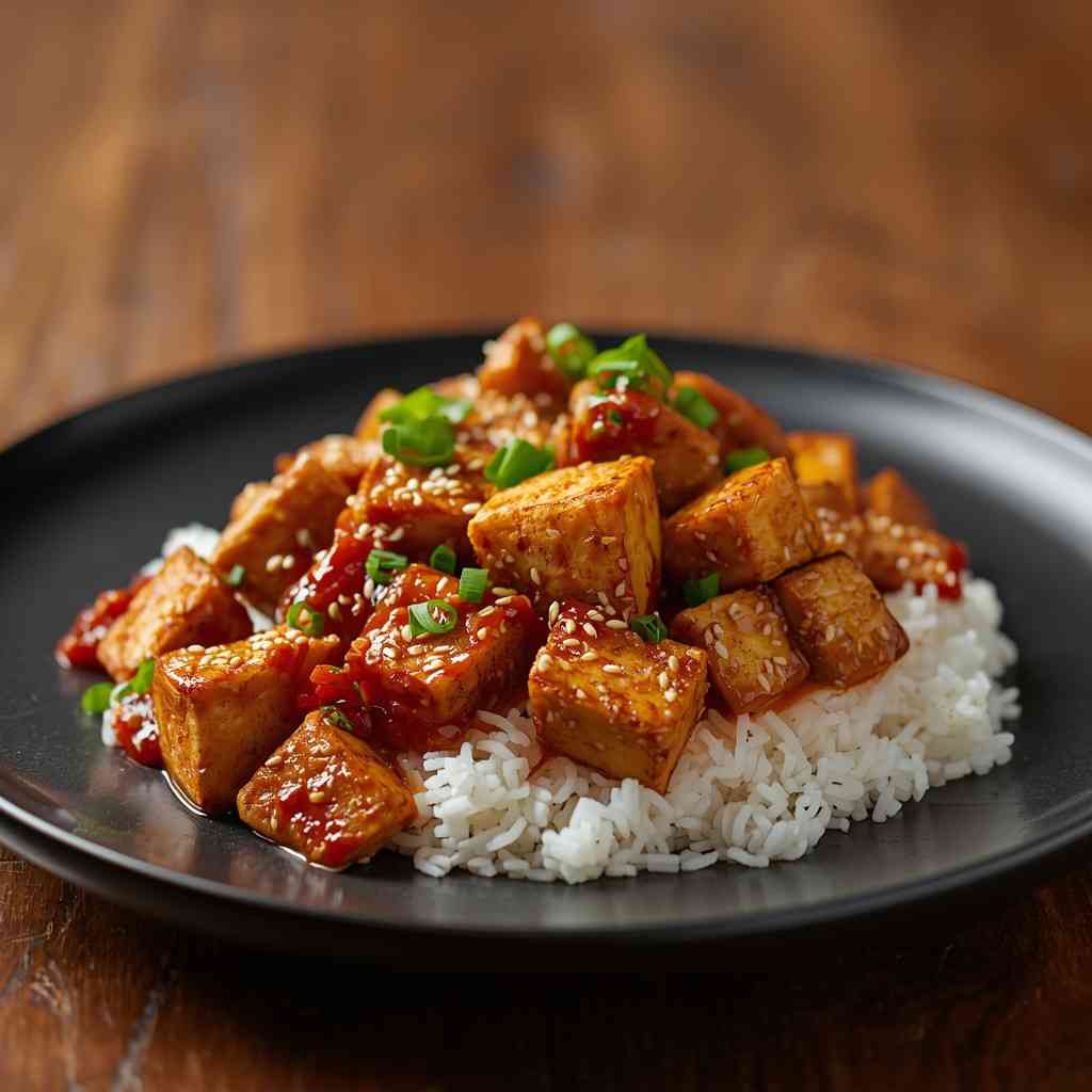 The crispy tofu pieces coated in sticky-sweet chili sauce are pure bliss — every bite is satisfying, bold, and balanced.