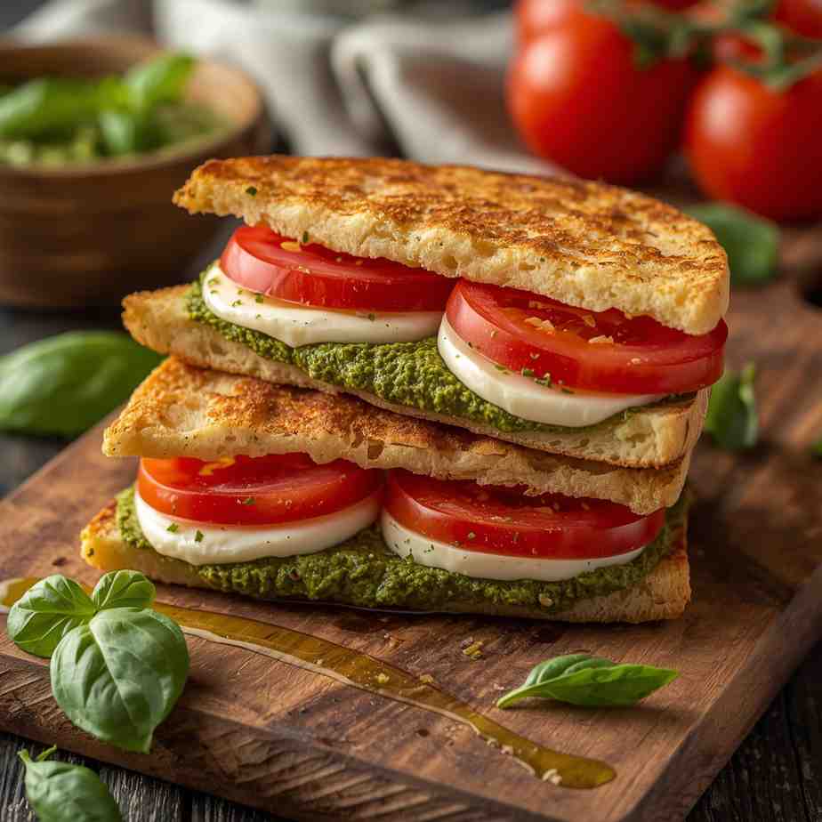 The Tomato Mozzarella Panini with Pesto is everything you want in a quick yet delicious meal — melty, fresh, aromatic, and deeply satisfying. Each bite captures the essence of Italian simplicity: juicy tomatoes, creamy mozzarella, fragrant pesto, and perfectly toasted bread.