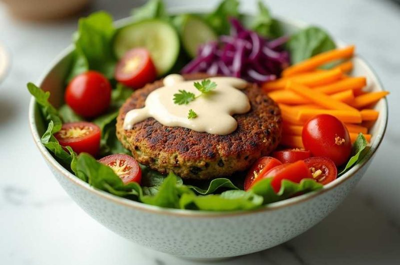 I love this recipe because it transforms a simple veggie burger into a colorful, nutrient-packed bowl. The tahini dressing adds a rich, creamy texture without overpowering the fresh vegetables, while the homemade veggie patty provides a satisfying, protein-rich center. It’s versatile, easy to customize, and leaves you feeling nourished and energized.