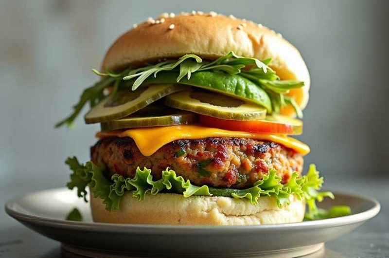 The Veggie Burger with Avocado and Pickles is a hearty, flavorful, and satisfying plant-based meal that proves burgers don’t need meat to be delicious. Packed with wholesome vegetables, legumes, and spices, this veggie burger offers a firm yet tender texture with rich, savory flavor. Creamy avocado adds smoothness, while tangy pickles bring brightness and contrast, making every bite balanced and exciting. Perfect for lunch or dinner, this burger is filling without feeling heavy and works well for vegetarians, flexitarians, or anyone looking to enjoy a healthier take on a classic comfort food.
