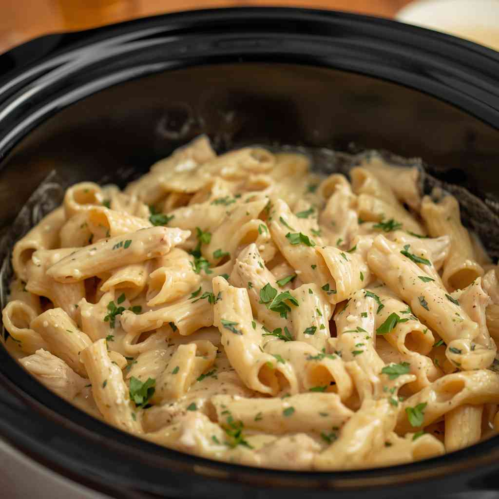 This recipe combines juicy chicken, al dente pasta, and a decadent homemade Alfredo sauce to create a dish that tastes indulgent yet is incredibly simple to prepare. With minimal prep, the slow cooker does all the work, making it a perfect go-to recipe for anyone craving a creamy, satisfying pasta meal.