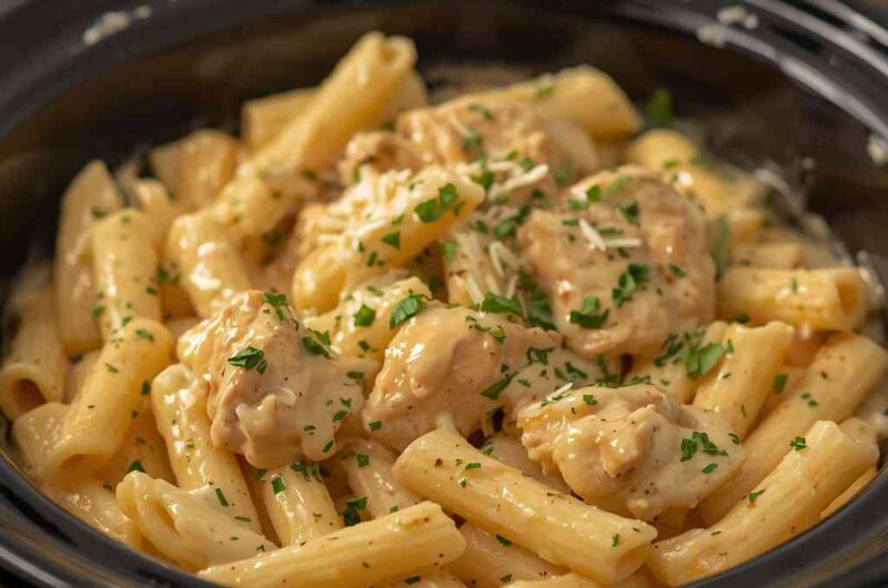 This recipe combines juicy chicken, al dente pasta, and a decadent homemade Alfredo sauce to create a dish that tastes indulgent yet is incredibly simple to prepare. With minimal prep, the slow cooker does all the work, making it a perfect go-to recipe for anyone craving a creamy, satisfying pasta meal.