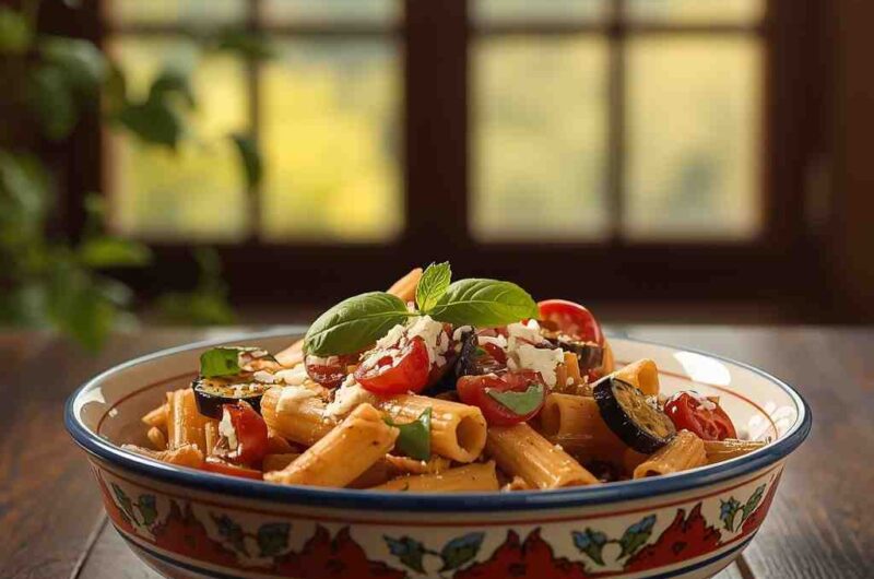 Rigatoni alla Norma with Eggplant & Ricotta Salata is a classic Sicilian pasta dish that balances roasted vegetables, tangy tomato sauce, and salty cheese for a comforting and flavorful meal. Its simple ingredients come together to create a dish that is both elegant and satisfying, perfect for weeknight dinners, entertaining guests, or introducing family and friends to authentic Italian flavors.