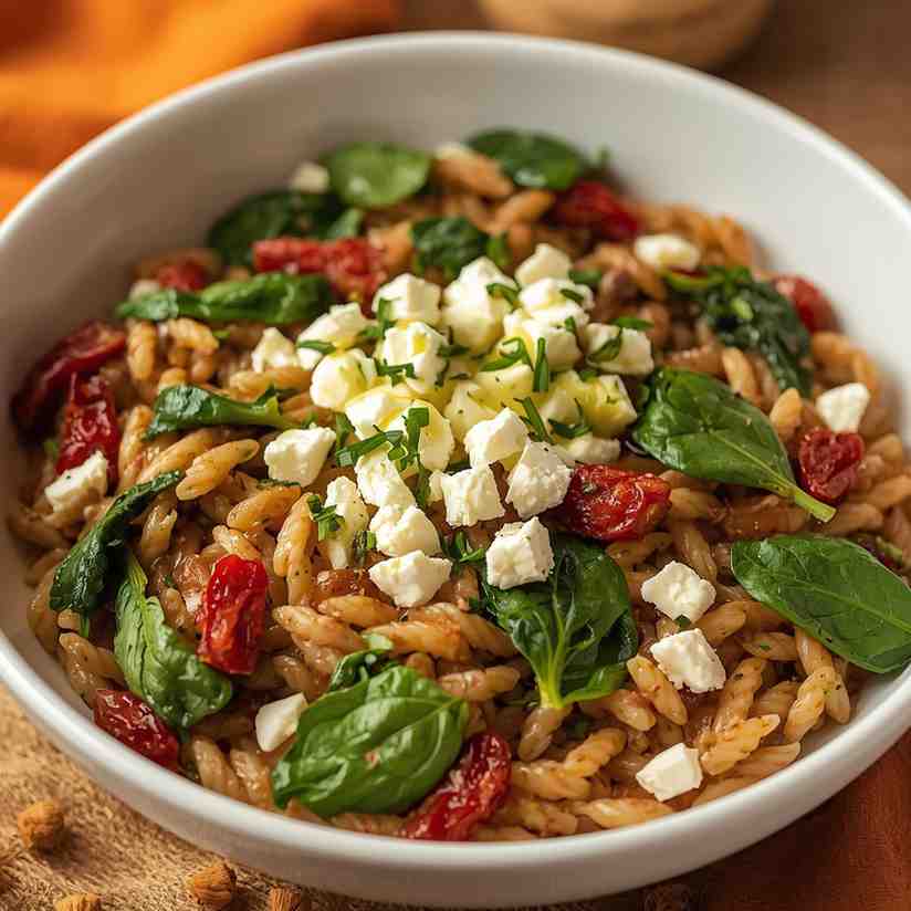 Sun-Dried Tomato & Spinach Orzo with Feta