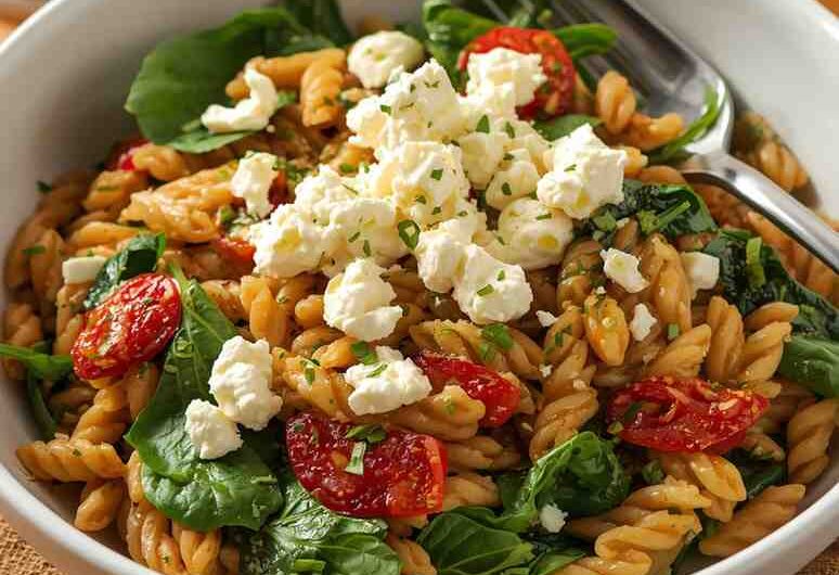 Sun-Dried Tomato & Spinach Orzo with Feta is a comforting yet elegant Mediterranean-inspired dish that perfectly balances creamy textures and bright, tangy flavors. Tender orzo pasta, vibrant spinach, and chewy sun-dried tomatoes come together in a luscious, lightly garlicky sauce, all finished with the salty tang of crumbled feta cheese.