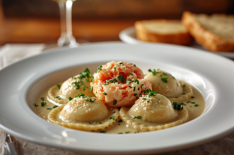 Lobster Ravioli in Creamy Garlic Sauce is a luxurious and indulgent dish that’s perfect for special occasions or whenever you want to impress at the dinner table. The sweet, tender lobster filling pairs perfectly with the rich, garlicky cream sauce, creating a comforting yet elegant meal. Easy to prepare yet restaurant-quality in taste and presentation, this dish is a must-try for seafood lovers and anyone who appreciates the finer flavors of Italian cuisine. Its creamy, savory richness and delicate seafood flavor make it a memorable dish that will delight family, friends, and guests alike.