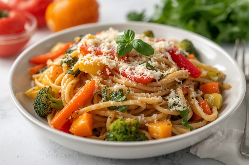 I love this recipe because it’s versatile, vibrant, and nourishing. It’s one of those meals that makes you feel good after eating — loaded with vegetables, yet indulgent enough with a sprinkle of Parmesan. You can use whatever veggies you have on hand, which makes it not only delicious but also practical. The light garlic-and-olive-oil-based sauce (sometimes with a splash of broth or white wine) keeps the pasta flavorful without being heavy.