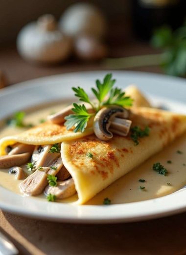 Chicken and Mushroom Crepes with Bechamel Sauce