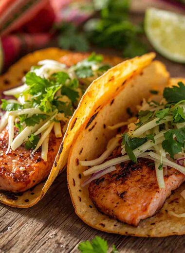 Blackened Salmon Tacos with Cilantro Lime Slaw