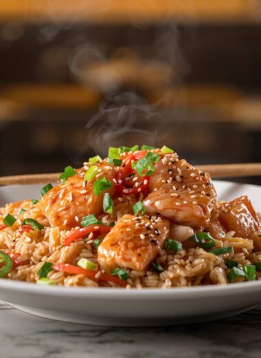 Fried Rice with Flaked Teriyaki Salmon and Vegetables