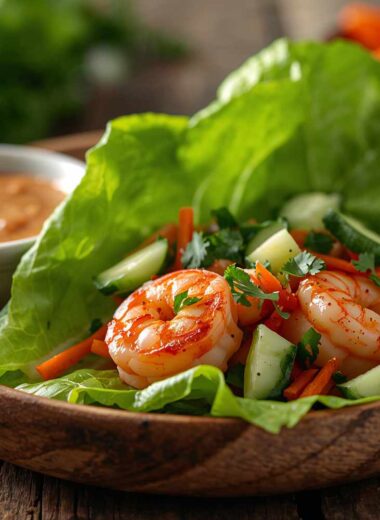 Shrimp Lettuce Wraps with Hoisin Peanut Sauce