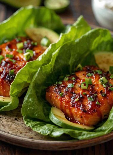 Teriyaki Salmon Lettuce Wraps with Cucumber and Avocado