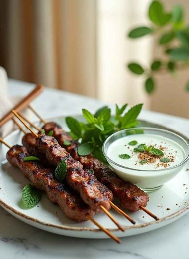 Grilled Lamb Skewers with Mint Yogurt Dip