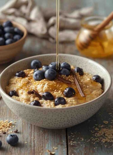 Baked Blueberry Oatmeal with Honey and Vanilla