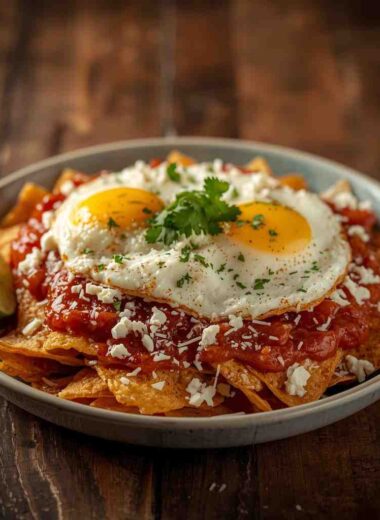 Chilaquiles with Fried Eggs and Cotija Cheese
