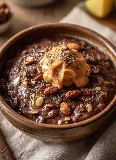 Chocolate Oatmeal with Almond Butter and Chia Seeds