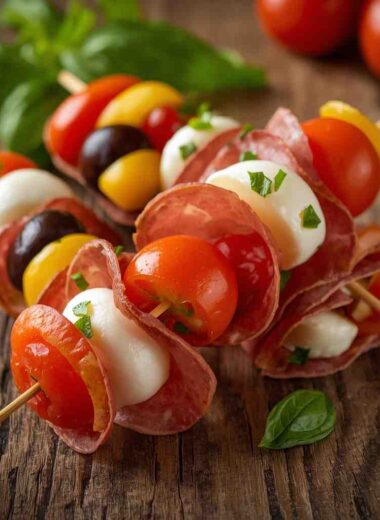 Antipasto Skewers with Salami and Mozzarella