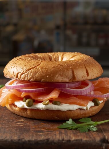 Smoked Salmon and Cream Cheese Bagel Sandwich