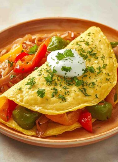 Veggie-Stuffed Omelette with Bell Peppers and Onions